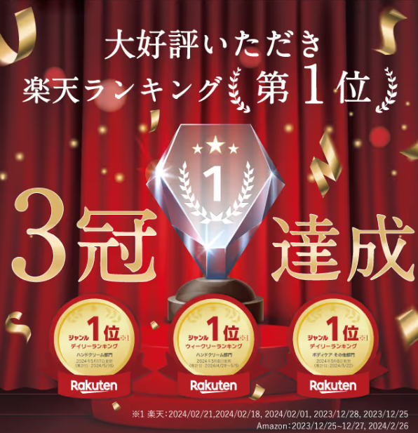 ※日本初:日本で初めてシワ改善、美白、手荒れを防ぐ効果が認められたハンドセラム(TPCマーケティングリサーチ(株)調べ ※シワを改善:有効成分 ナイアシンアミド、シワを改善する
