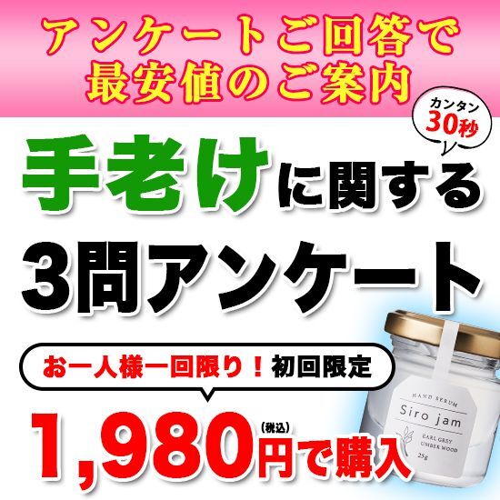 アラフィフになってから手の老けた印象に悩んでいました。シロジャムを使い始めて1週間,友達にも「手が若返ったね」と褒められて、もう手放せません。香りも優しくて癒されます🌸